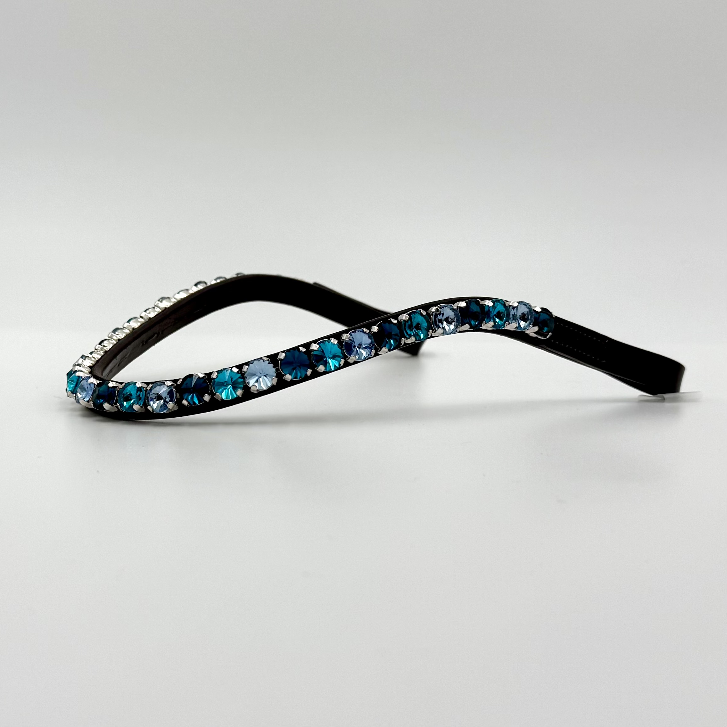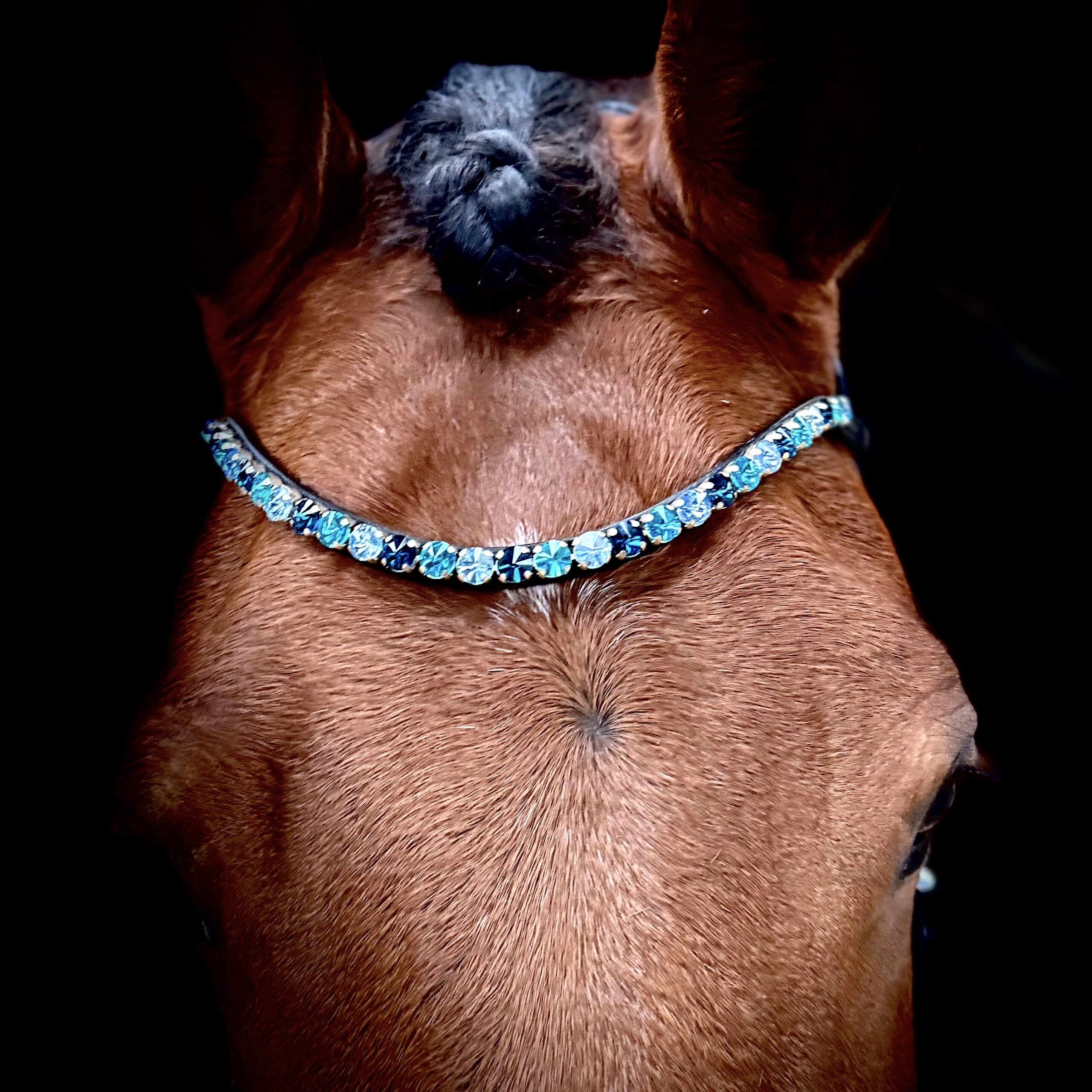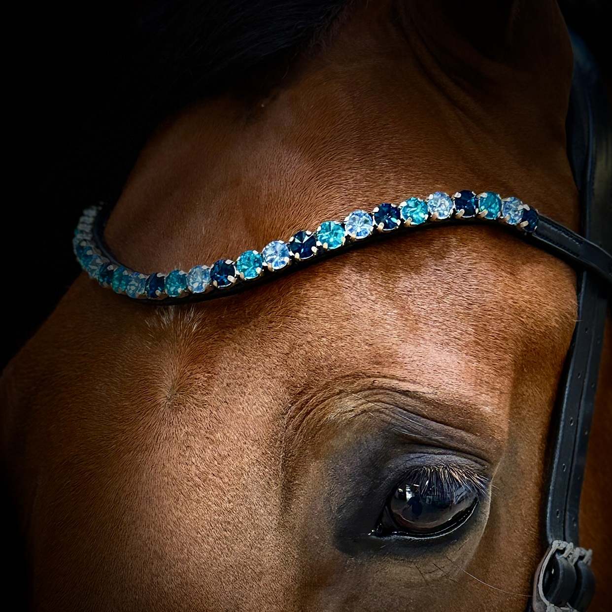 Giv din hest et eksklusivt og tidløst udtryk med dette smukke pandebånd. De funklende og skinnende 10mm sten er nøje udvalgt i kølige blå nuancer, der fremhæver hestens udtryk uden af tage opmærksomheden fra helheden.