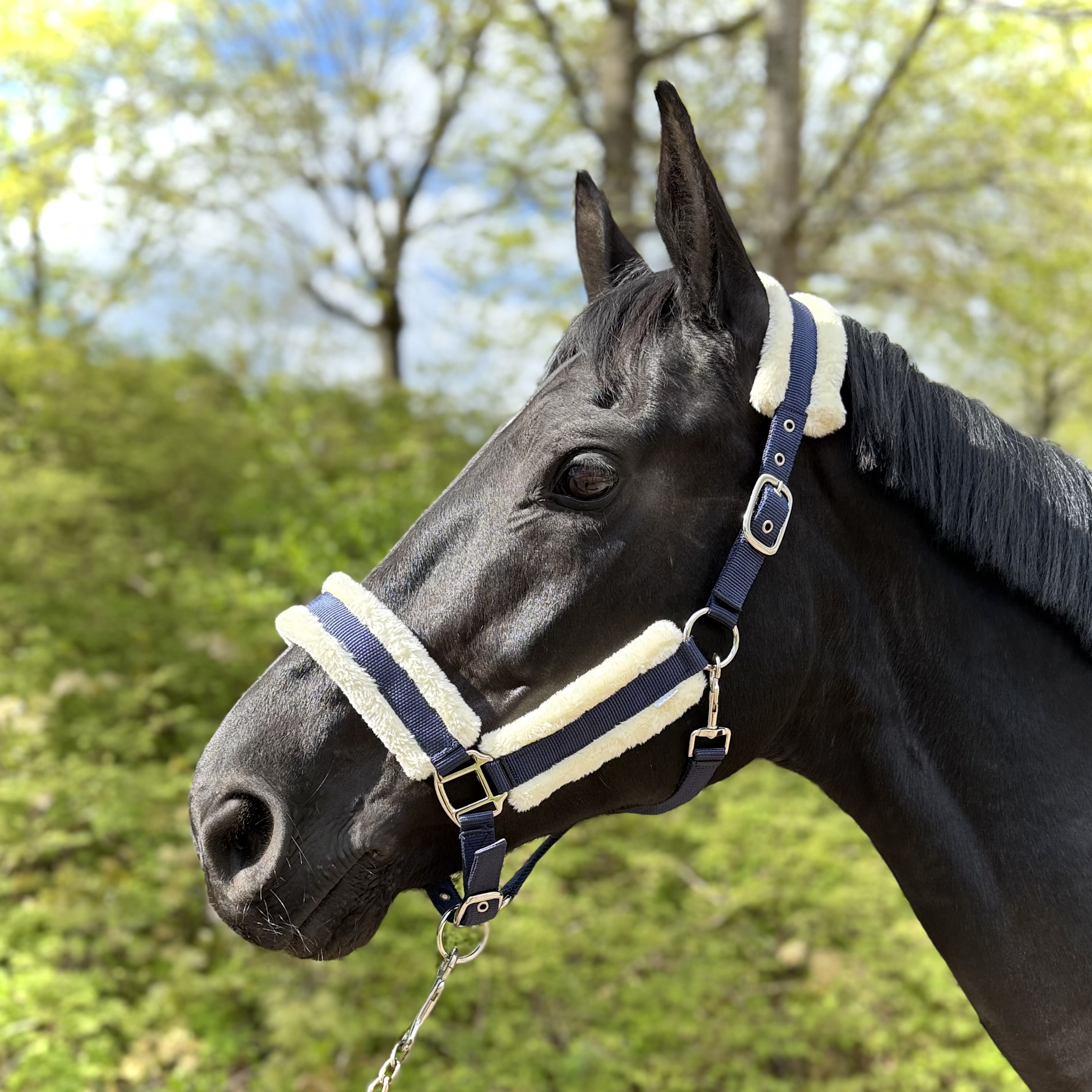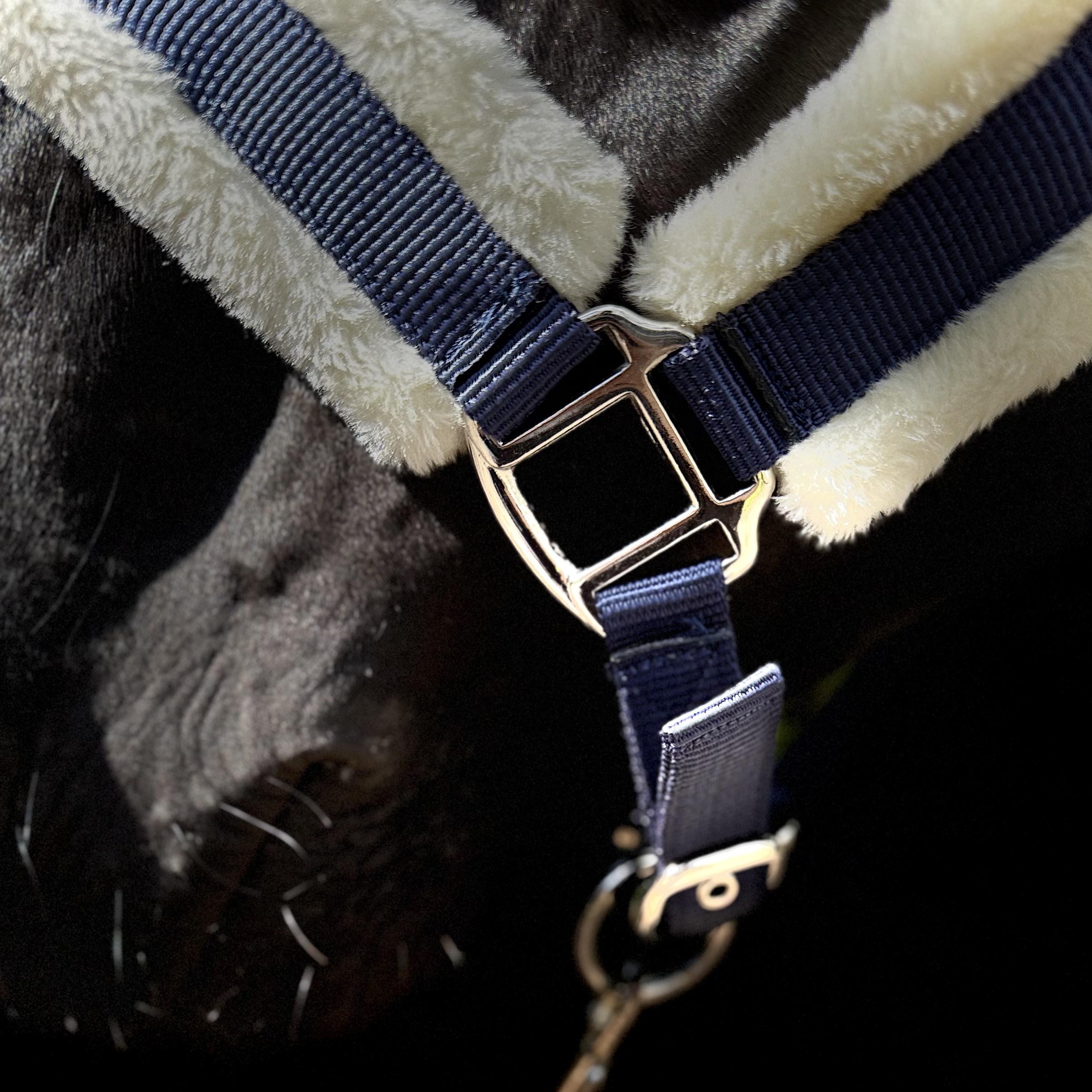 Denne Chrystelli nylongrime er både justerbar og komfortabel, med justering på begge sider af nakkestykket og under hagen for en perfekt pasform. Den bløde padding på næsen, siderne og i nakken reducerer tryk og gnidninger, hvilket sikrer en behagelig oplevelse for din hest.