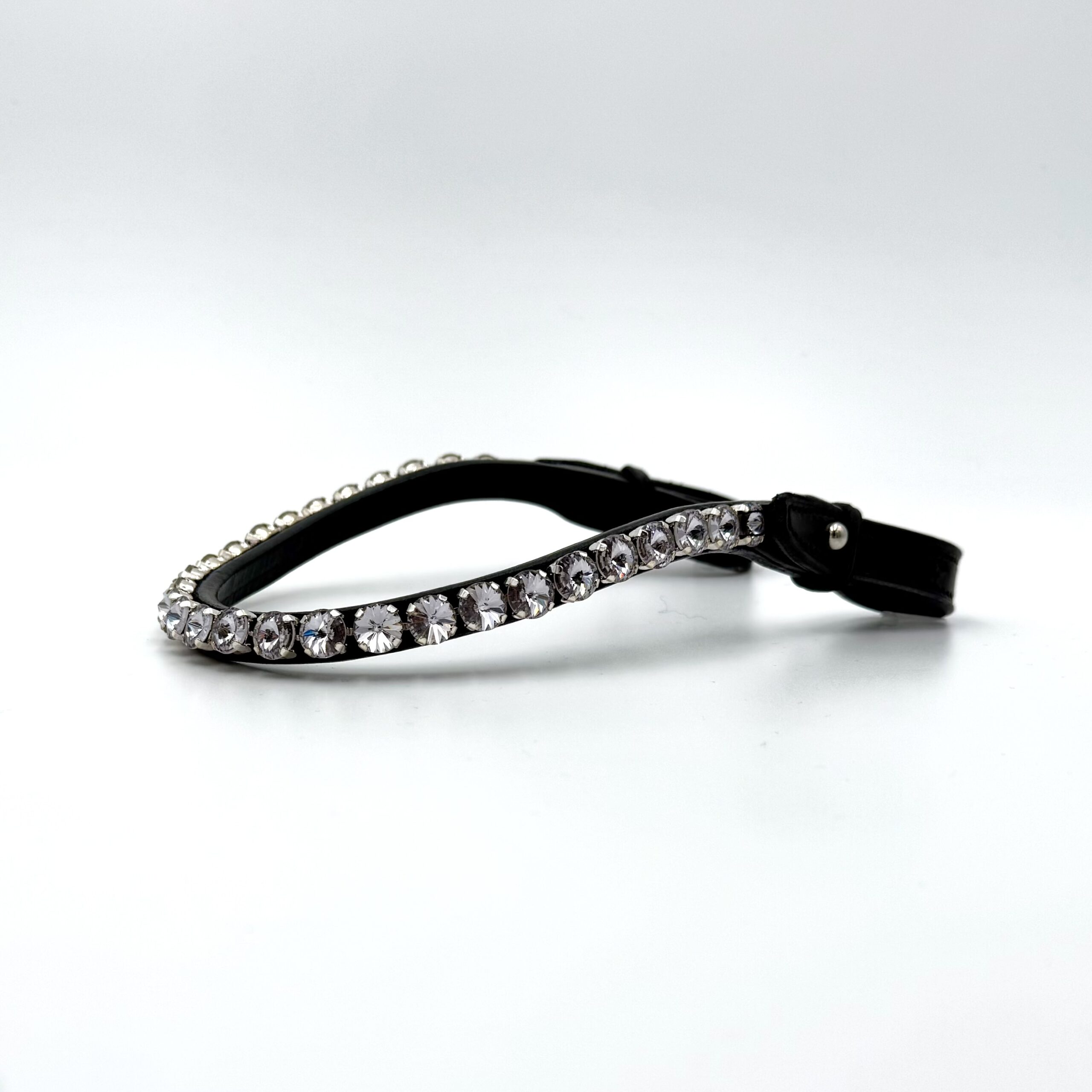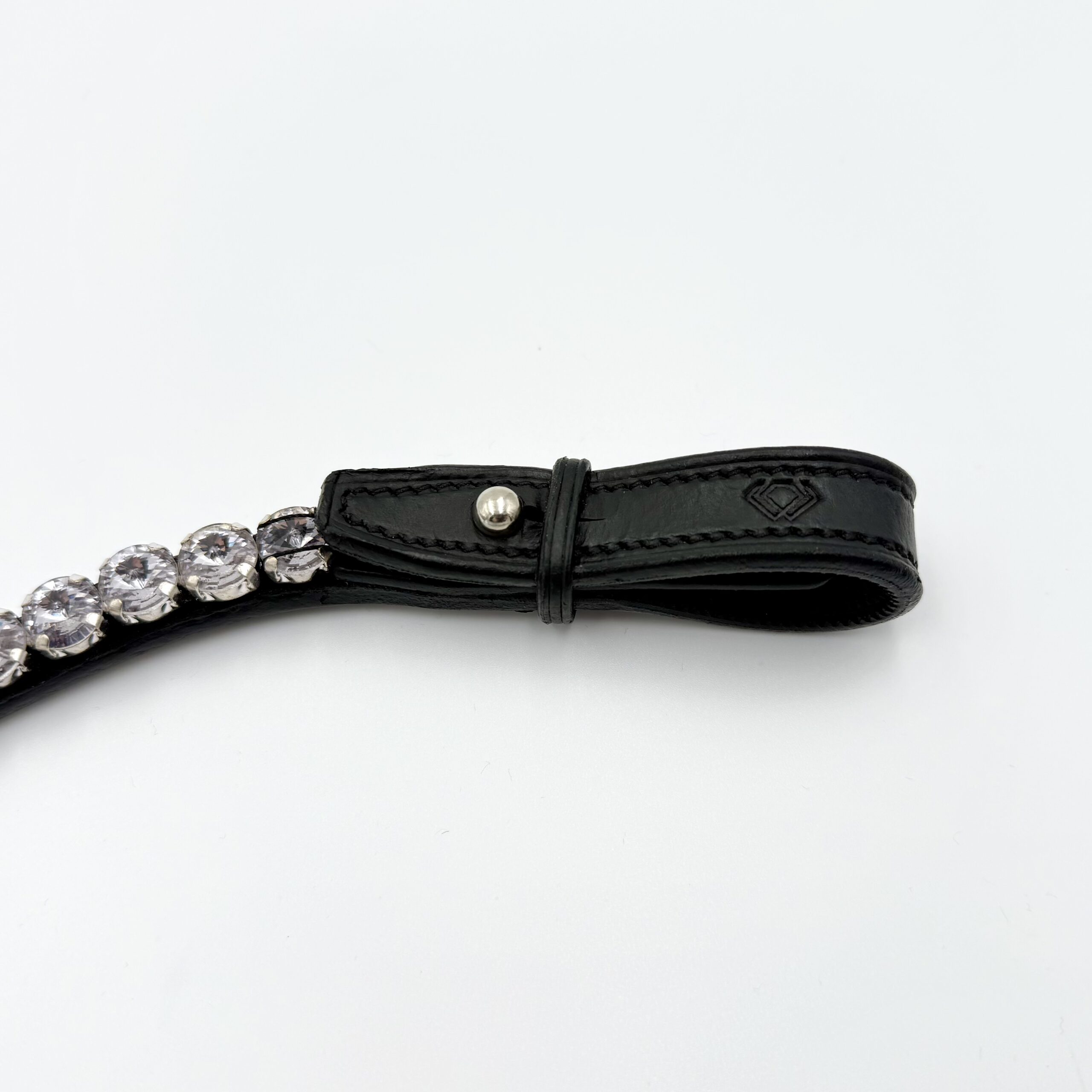 Pandebåndet er fremstillet i kvalitetslæder og designet til at gå let ned i panden, hvilket skaber et elegant og harmonisk look. Perfekt til både hverdagens træning og de særlige øjeblikke på stævnebane, hvor detaljerne gør forskellen.