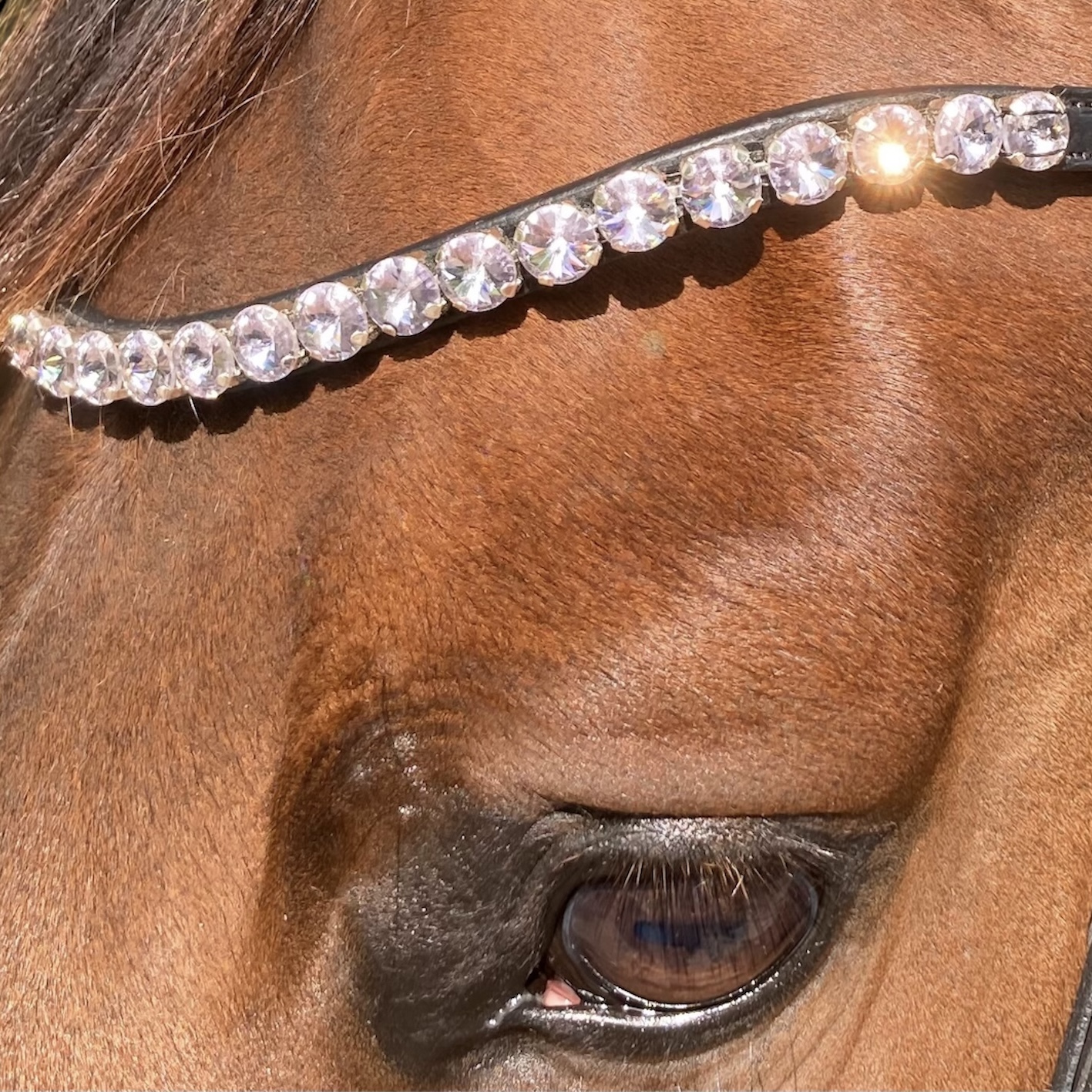 Giv din hest et eksklusivt og tidløst udtryk med dette smukke pandebånd. De funklende og skinnende 10 mm sten er nøje udvalgt i en lys farve af lavendel, der fremhæver hestens udtryk uden af tage opmærksomheden fra helheden.