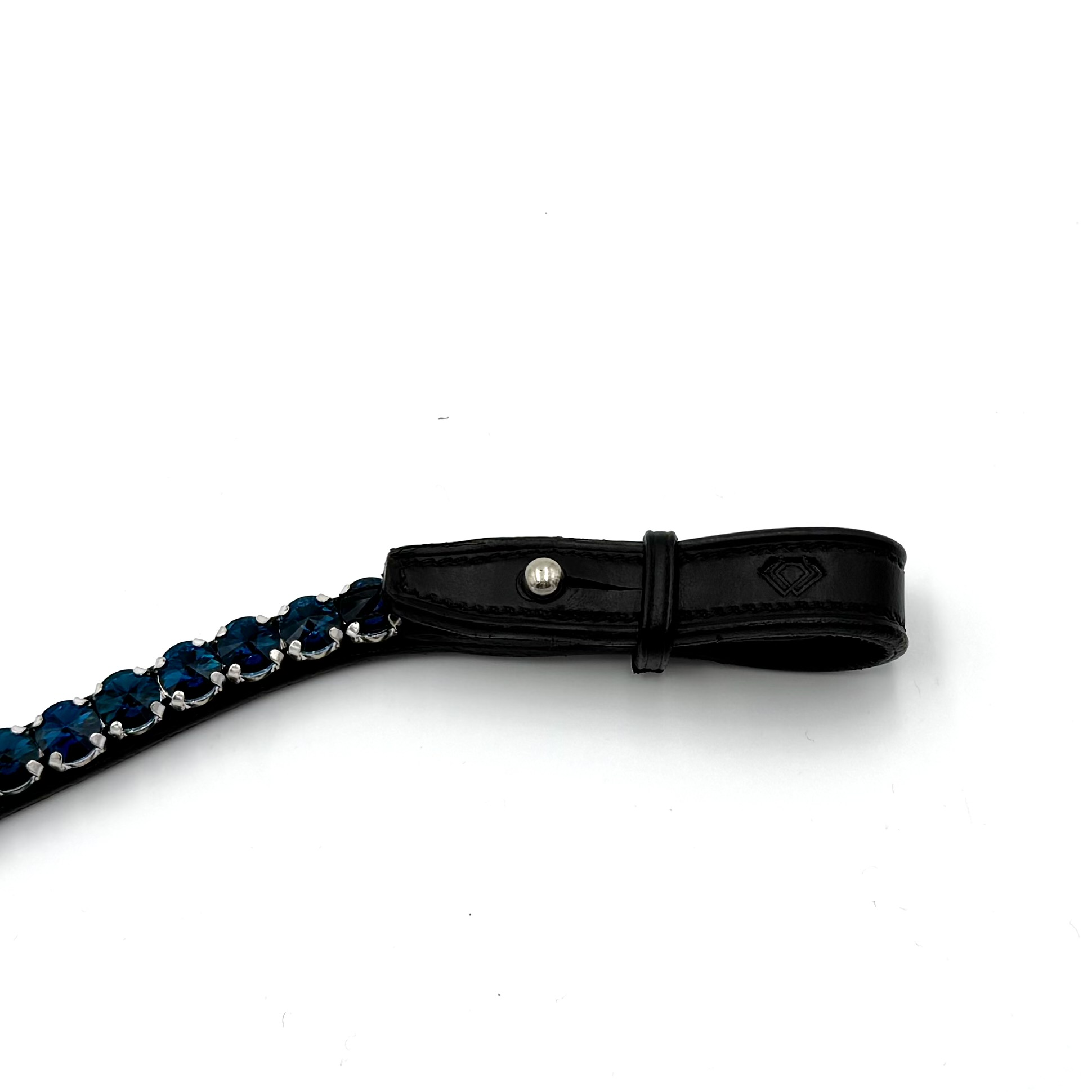 Giv din hest et eksklusivt og tidløst udtryk med dette smukke pandebånd. De funklende og skinnende 10 mm sten er nøje udvalgt i smukke zircon blå farve, der fremhæver hestens udtryk uden af tage opmærksomheden fra helheden.